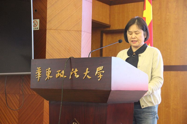 上海市黄浦区人民法院政治部副主任朱亚辉作为优秀组织单位代表发言。她分享了黄浦区人民法院的做法:以切实提高学生法律实践能力为目标,注重前中后三个阶段,有序推进。通过前期准备,为学生安排专业对口的法庭进行实习;开展中期教学,深耕细作,提高学生综合能力;进行后期总结,查漏补缺,更好地推进法律助理项目。