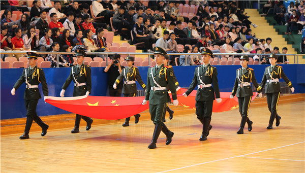 开幕式上,来自各学院和教职工代表队的15个方阵踩着整齐的步伐,喊出嘹亮的口号,阔步通过主席台,充分展现了我校师生奋发向上、蓬勃进取的精神面貌。