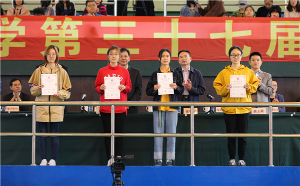 本届校运会精心设置了各种比赛项目,除了100米、200米、400米、1000米、1500米、4*100米接力、跳远、跳高、实心球等经典田径项目外,还设有12×50米迎面接力、飞镖、拔河、跳长绳等趣味比赛项目。在为期一天半的比赛中,一千余名同学在赛场上挥洒汗水,展开角逐。赛场上捷报频传,运动员们在加油呐喊声中奋力拼搏、团结进取,赛出了风格、赛出了水平;全体裁判员和工作人员恪守职责、热情服务,公平、公正、圆满地完成了各比赛项目的组织和保障工作。10月26日,我校第三十七届田径运动会顺利闭幕。