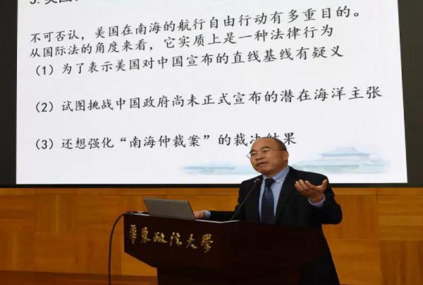 10月26日,由中国海洋发展研究中心主办,我校国际法学院、军事法研究中心与武汉大学国际法研究所共同承办的“海洋法前沿问题与中国海洋战略”青年论坛在长宁校区举行。中国海洋发展研究中心主任、国家海洋局原局长王曙光,我校副校长张明军,中国海洋发展研究中心常务副主任高艳,广东海洋发展研究会理事长、国家海洋局南海分局原局长李立新,上海交通大学环太平洋研究中心主任王少普,教育部特聘教授、武汉大学博士生导师杨泽伟,我校国际法学院党委书记寿新宝、军事法研究中心主任管建强等出席论坛。论坛得到了《国际问题研究》《华东政法大学学报》《东方法学》《武大国际法评论》《边界与海洋研究》《中国海洋大学学报(社科版)》等期刊的大力支持,相关人员出席会议。