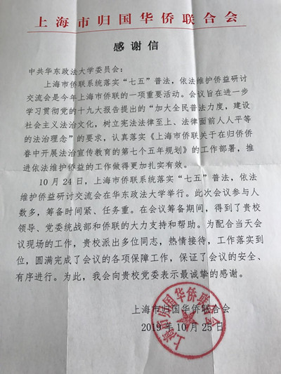 10月24日,上海市侨联系统“落实‘七五’普法、依法维护侨益”研讨交流会在长宁校区召开。