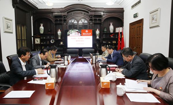 11月2日下午,我校党委领导班子“不忘初心、牢记使命”主题教育第十二次集中学习研讨在长宁校区开展。班子成员围绕“十九届四中全会和习近平关于主题教育专项整治指示精神”进行学习研讨。校党委书记郭为禄,校党委副书记、校长叶青,副校长张明军和校党委常委杨忠孝领学主讲。会议由郭为禄主持。