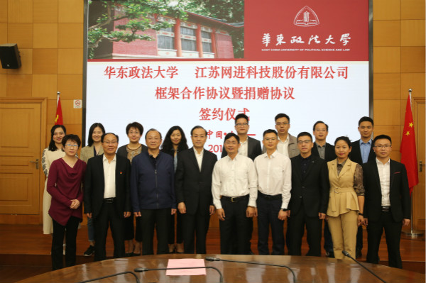 在学校复校40周年之际,我校对外合作交流工作不断拓展深化,学校社会服务影响不断扩大。我校与网进科技公司此前签署人才培养合作协议,合作取得显著成果,此次双方继续扩大深化合作,同时签署了合作框架协议与捐赠协议,双方将充分推进优势资源共享和互补,促进法律应用与大数据处理紧密结合,在人才培养、理论研究、智慧司法等领域进一步深化和推进,携手前行,共同发展,开启校企合作新篇章。