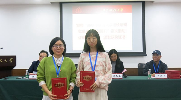 会议还对我校2019年研究生人才培养质量评价体系建设项目和 “高水平地方大学建设与研究生教育质量提升”征文活动进行了总结,对获奖者颁发证书,并邀请10位获奖代表进行了交流汇报。