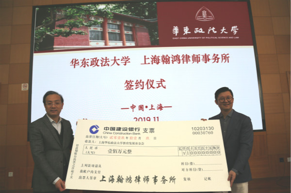 在学校复校40周年之际,我校对外合作交流工作不断拓展深化,形成多层次、多领域、多元化的对外合作交流模式,此次我校与上海翰鸿律所同时签署合作协议与捐赠协议,助力学校发展,积极发挥社会服务影响力,也是和律师事务所合作的新路径和新探索。