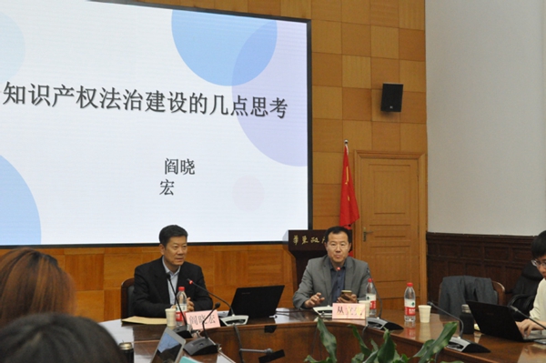 11月18日下午,应知识产权学院邀请,全国政协文化文史和学习委员会副主任阎晓宏做客东方知识产权讲坛,作“关于知识产权法治建设的几点思考”专题讲座。讲座由知识产权学院副院长丛立先教授主持,我校知识产权专业师生积极参与。讲座开始前,副校长陈晶莹与阎晓宏进行了深入交流。