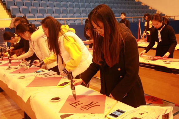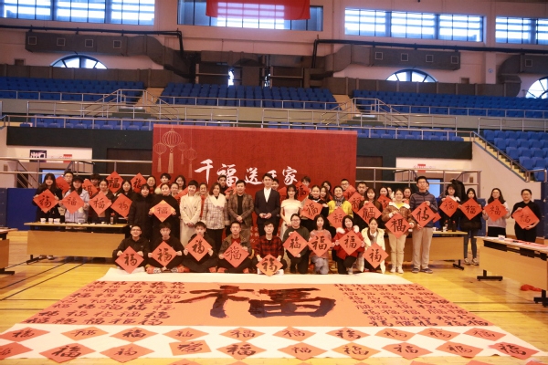 12月18日,由社会协同合作处(校友办)、校团委主办,大学生文化艺术团和百外书社联合承办的“千福送千家”华东政法大学书法作品送校友活动在松江校区富田体育馆举行。校党委副书记、纪委书记应培礼,党委常委、党校办主任、统战部部长曲玉梁,中国书法家协会会员、上海青年书法家协会副主席、百外书社指导老师王玺,校友会办公室主任吴高升,校团委副书记焦佳、张晶星出席活动。