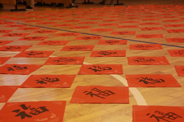 在2020年新春佳节即将到来之际,王玺与50位百外书社社员挥毫泼墨,用心勾勒一笔一画,书写出一千幅充盈喜庆的“福”字,铺满了体育馆。纸墨飘香,浓浓情谊,每张信纸、每副作品都承载了对校友满满的心意。千福作品将于近日赠予千名校友,为校友传递喜庆的节日气氛,送上美好的新年祝愿。师生现场共同书写完成了3*6米巨幅“福”字,将作为纪念复校40周年的礼物赠送母校,表达对学校的美好祝福。