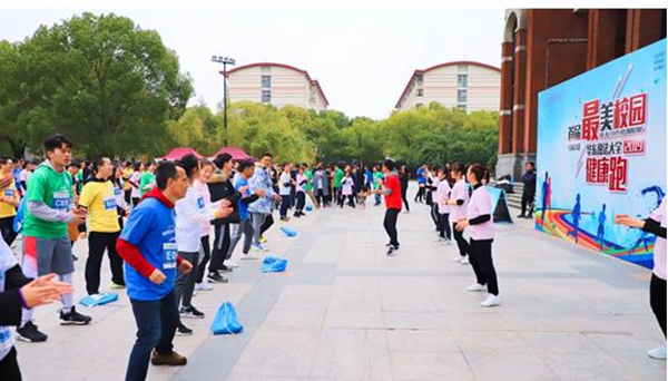 活动在校健美操队的《青春活力》暖场舞蹈中拉开序幕,周立志宣布“最美校园”健康跑活动开幕。体育部竞赛中心主任干敏雷老师带领选手热身,邵军为比赛发令。