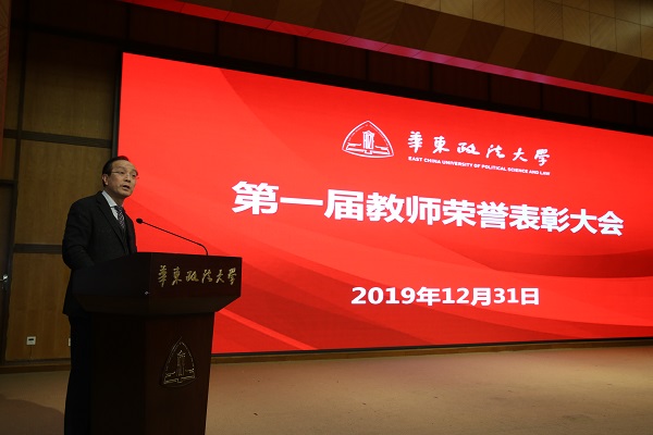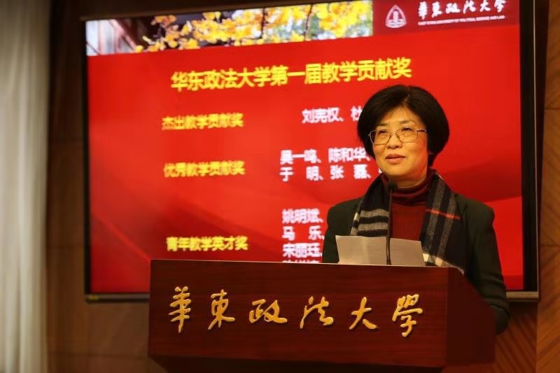 郭为禄代表学校党委向获奖教师表示热烈祝贺,并祝全校广大教职工和同学们元旦快乐、新春吉祥。他指出,完善教师荣誉体系是为了更好坚守育人初心、更好践行“立德树人”根本使命,传承华政精神和优良办学传统,更好塑造华政人的价值共同体。教师队伍素质提升是完成高校培养人才任务最重要的“供给侧改革”,学校深化改革要在教师管理体制机制改革上率先发力,要在新时代师德师风建设制度体系建设上率先发力。华政之所以能够在“逆境中崛起,忧患中奋进,辉煌中卓越”,源自于一代代教职员工始终在这片园地上默默耕耘、无私奉献。“以教师为第一、以学生为根本”始终是学校最珍贵的文化传统,是华政人多年来秉持的信念和价值追求,设立高规格的教师荣誉奖项,就是要巩固这一价值信念,凝聚起所有华政人共同奋斗的精神力量。