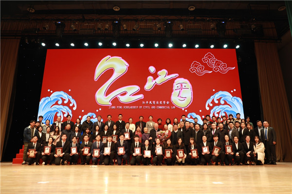 2019年12月24日晚,由中国政法大学民商经济法学院、江平法学基金主办的第二十届“江平民商法奖学金”颁奖典礼在中国政法大学昌平校区礼堂举行。著名法学家、中国政法大学终身教授江平先生出席典礼,并为来自中国政法大学、华东政法大学、南京大学、中南财经政法大学、北京大学、清华大学、中国人民大学、浙江大学、武汉大学等九所院校的32名获奖学生颁奖。我校国际法学院2016级本科生袁博文、经济法学院2016级本科生车范莲荣获嘉奖。法律学院姚明斌、王蒙作为指导老师代表参加典礼,姚明斌受邀代表八所校外参评单位致辞。