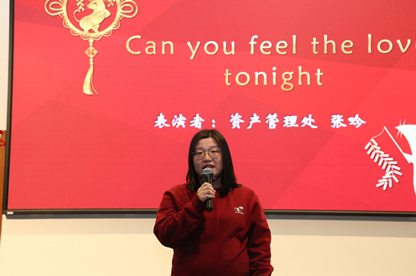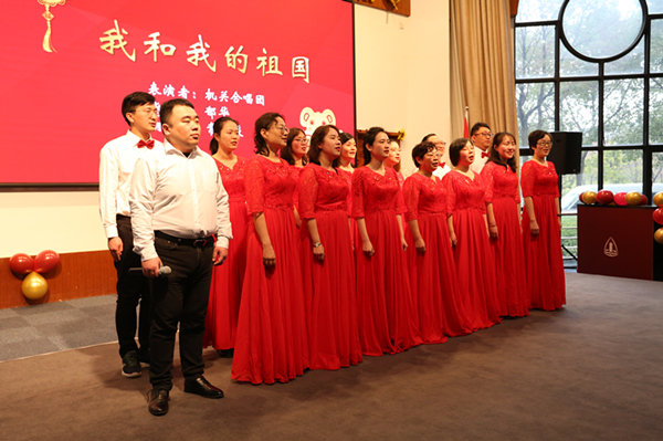 在机关合唱团《我和我的祖国》深情的音乐中,联欢会正式开始。长宁舞蹈队带来的《绒花》清丽怡人;独唱《我爱你,中国》《成都》《Can you feel the love tonight》歌声悠扬;党校办、信息办、教务处、财务处的合唱《掌声响起》《玉泊湖畔的“畅享”》《机关的朋友来相会》《东方之珠》令人耳目一新;朗诵《我骄傲,我是中国人》声情并茂;快板《夸机关》表演精湛。期间穿插的抢凳子等小游戏和抽奖环节更是将气氛推向高潮。