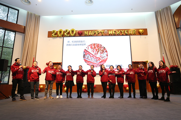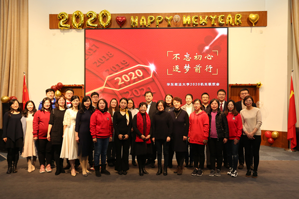 为展现机关教职工积极向上的精神风貌,营造和谐欢乐的工作氛围,丰富校园文化生活,1月10日,主题为“不忘初心、逐梦前行”机关新年联欢会在松江校区尚法厅举行。副校长周立志出席联欢会并致辞。