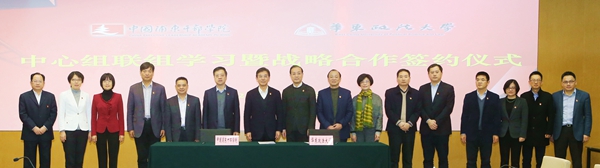 1月7日上午,浦东开发开放主题教室内,我校与中国浦东干部学院中心组联组学习暨战略合作签约仪式举行,标志着双方落实上海市支持学院建设和发展协调小组会议精神又向前迈进了一大步。我校党委书记郭为禄和中国浦东干部学院分管日常工作副院长、机关党委书记曹文泽分别致辞,我校校长叶青和曹文泽代表两校在协议书上签字。
