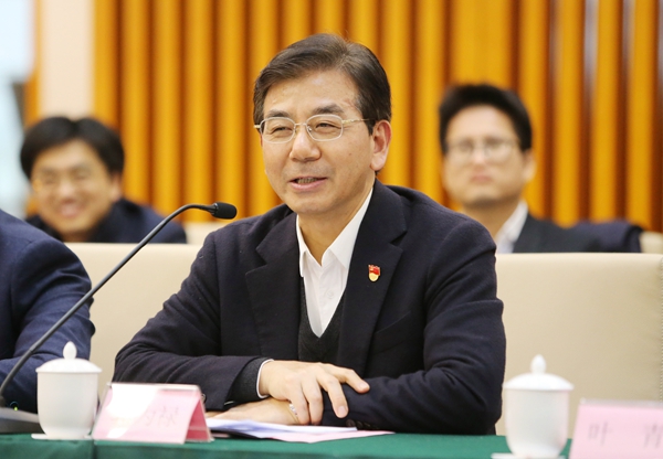 郭为禄衷心感谢学院对此次学习交流活动的精心安排,并简要介绍了我校加强“双一流建设”、开门办学开放办学创新办学以及长宁校区古建筑修缮等方面的情况。他表示,此行参观学习收获很大,特别是中浦院的主题教室建设,从内容到形式都值得华政在办学方面学习借鉴。下一步,希望双方能继续深化在教育教学方面的合作,加强学术交流特别是法学学科资源共享,共同携手把教学科研事业推向前进。
