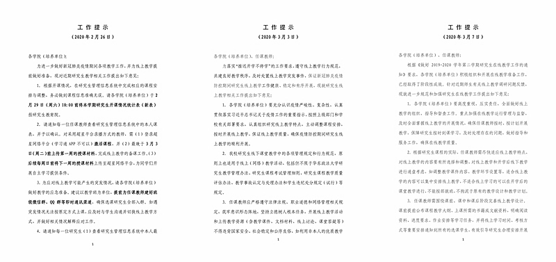 在新冠肺炎疫情防控特殊时期,为贯彻落实教育部“停课不停教、停课不停学”工作要求,在学校新冠肺炎疫情防控工作领导小组统一领导下,研究生教育院统筹协调、多措并举,全面部署疫情防控期间的研究生教学和培养工作,确保新学期线上教学工作顺利开展。
