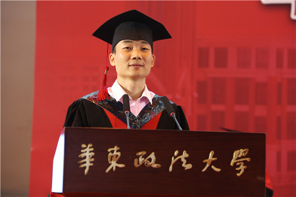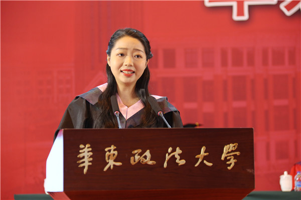 “忆往昔峥嵘岁月,看今朝潮起潮落,望未来任重而道远。”博士毕业生代表、法律学院崔梦豪祝愿母校学术百花齐放,教书育人桃李芬芳,奋勇前行乘风破浪,华政的明天更加美好。