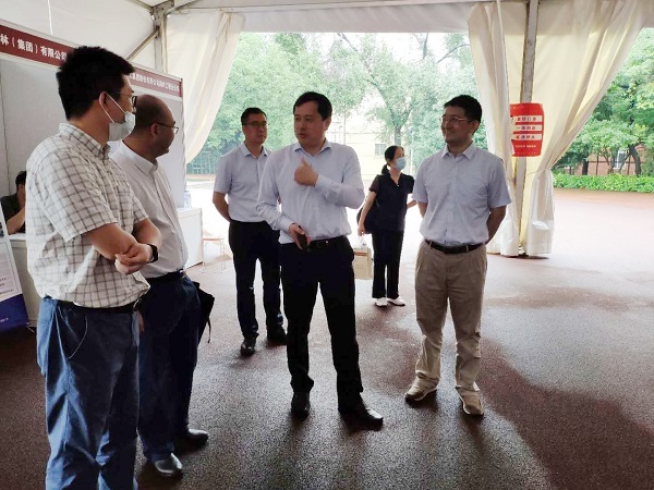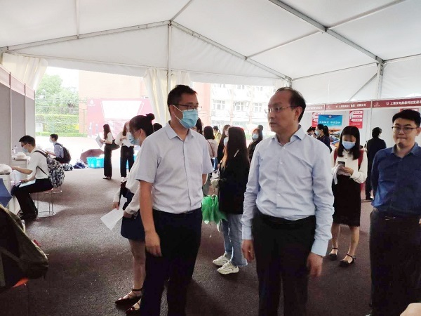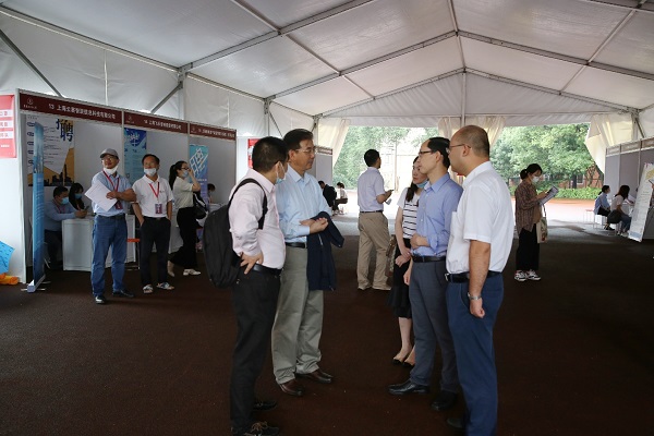 校党委书记郭为禄、校长叶青、副校长周立志到招聘会现场了解招聘会情况并与市国资委、市教委以及招聘单位工作人员交流。郭为禄代表学校对市国资委和市教委给予我校毕业生就业工作的大力支持表示感谢。他介绍了今年我校毕业生就业工作基本情况,并希望与市国资委合作能够长期化、常态化,通过“小而精”、岗位和毕业生专业、就业意愿匹配的专场招聘会为国有企业输送优秀华政人才。叶青指出,参会国有企业实力雄厚,所提供岗位和我校毕业生专业精准匹配,是市国资委落实中央“六稳”“六保”,关注支持大学生就业的重要举措。他现场鼓励参会毕业生积极应聘,尽快落实就业。周立志在现场要求,除了做好现场招聘组织工作外,也要注重用人单位跟踪反馈工作,并指导未到场学生做好网上简历投递。