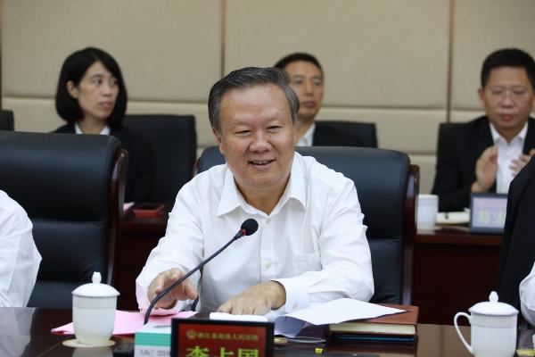 叶青感谢浙江法院多年来对学校的支持,对浙江高院始终坚持高站位、高标准、高质量、高水平,为浙江经济社会发展营造良好的法治环境,提供有力司法保障表示钦佩和赞赏,他介绍了我校近年来的发展和变化,表示双方将在已有合作成果的基础上,继续深化合作深入贯彻落实党中央全面依法治国的路线方针,期待双方共同在服务国家战略大局、增强合作品牌特色、优化合作机制三个方面深化拓展,推进法学理论实践融合发展。