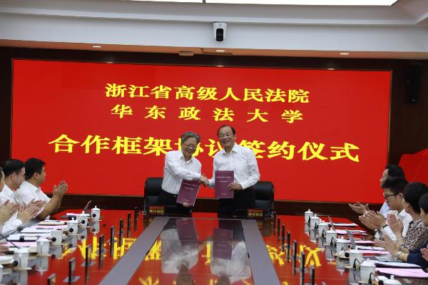我校自2013年与浙江高院签署合作协议以来,双方密切联系交流并取得很多合作成果,此次双方在新的时代背景和战略需求下,深入贯彻习近平总书记关于长三角一体化发展的重要论述精神,就法治人才培养、法治理论与实务研究、专家交流互聘等方面继续拓展领域、深化合作,共同努力为长三角一体化发展提供法治保障。