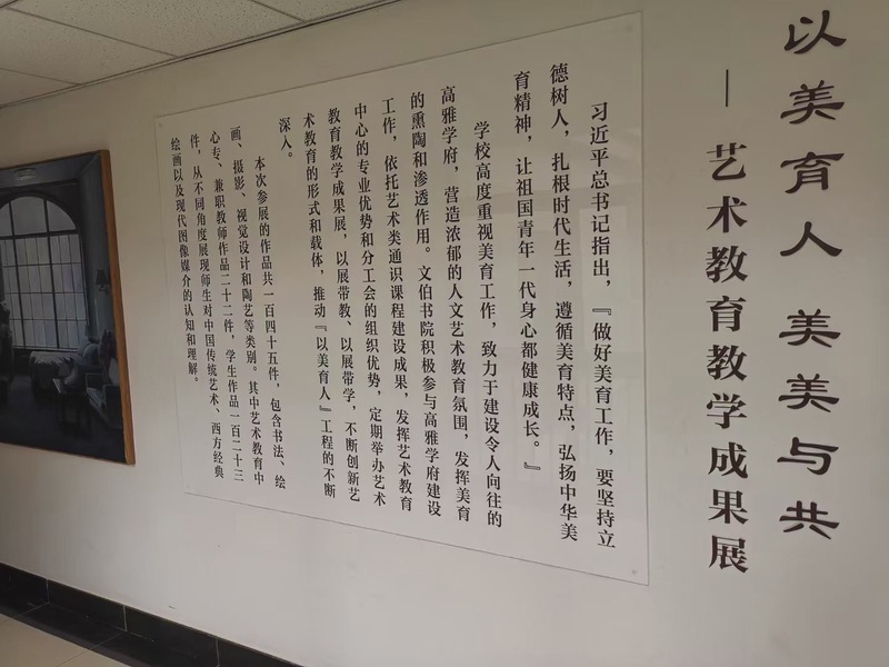 唐波代表校党委向策展方文伯书院党总支、艺术教育中心、分工会表示由衷感谢,并预祝这次以“美”为主题的艺术展览活动成功举办,为美丽校园建设、高雅学府建设增光添彩。她指出,学校高度重视美育工作,学校的艺术教育经过了三十多年的探索和发展,为开启学生的艺术启蒙教育、提升学生的艺术修养起到了重要的作用;本次艺术教育教学成果展,以展促教、以展带学,与艺术通识课程建设紧密相连,是对既有艺术教学成绩的一次系统呈现,既是贯彻落实“培养德智体美劳全面发展的社会主义建设者和接班人”要求的重要举措,也是践行全人教育理念、助推高雅学府建设、提升学校整体文化艺术氛围的创新实践。