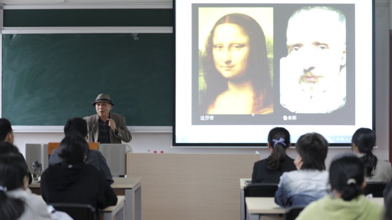 王恬老师在学生综合事务楼西楼新落成的书画教室为与会师生带来了主题为“如何‘看’现当代的艺术作品”的人文艺术沙龙。他从现代艺术的角度切入,向同学们介绍了古典主义、印象派、巴洛克、新古典主义等艺术流派,选取艺术大家经典代表作品,就如何欣赏、感知绘画艺术进行了分享。