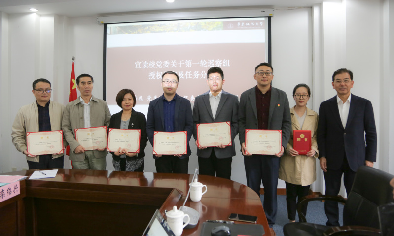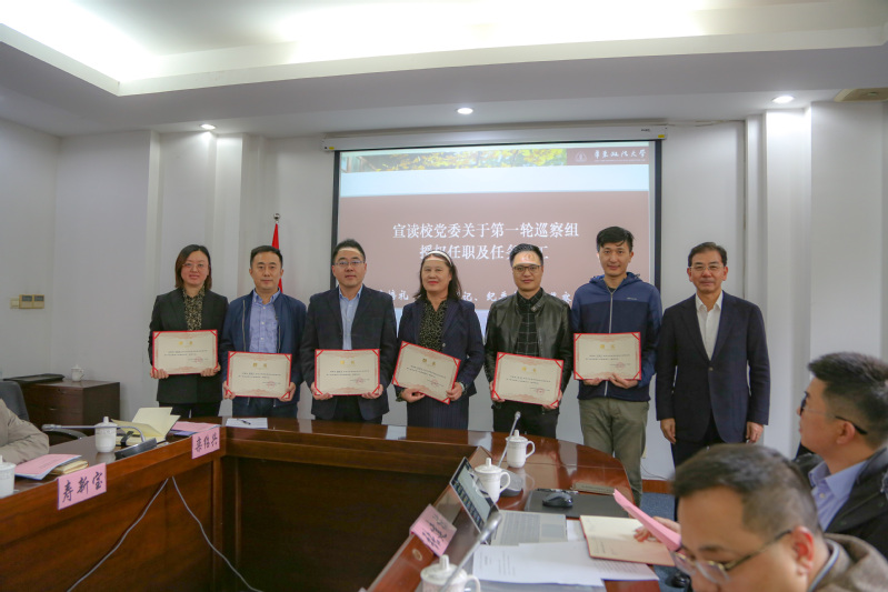 会上,应培礼还宣读了校党委关于第一轮巡察组授权任职及任务分工决定,郭为禄为党委第一轮巡察组成员颁发聘任证书。党委巡察办主任李秀娟、党委组织部部长戴莹分别就本轮巡察工作和发展党员专项检查工作进行了部署和解读。第二巡察组组长袁付平、经济法学院党委书记张毅、政治学与公共管理学院党委书记曹都国分别代表巡察组与被巡察单位领导班子作了表态发言。
