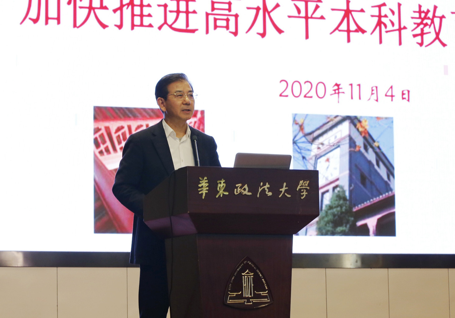 郭为禄结合学校“十三五”发展历程和《华东政法大学建设高水平本科教育2025行动计划(讨论稿)》,以“准确识变、科学应变、主动求变,加快推进高水平本科教育体系建设”为主题,就深化本科教育改革提出四点意见。
