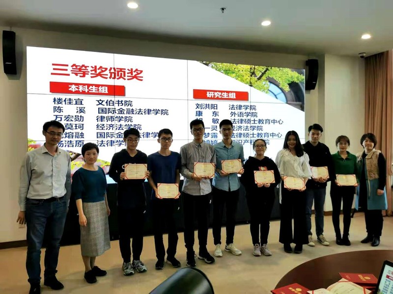 11月18日,第七届华东政法大学文献检索大赛颁奖仪式在松江校区明珠楼举行,图书馆馆长兼中外法律文献中心主任朱俊,副馆长兼中外法律文献中心副主任吴志鸿、吴高升,读者研究与指导部主任龚媛媛,参考咨询部主任郭海霞,中外法律文献中心办公室主任王兴海和获奖选手参加活动。颁奖仪式由吴志鸿主持。