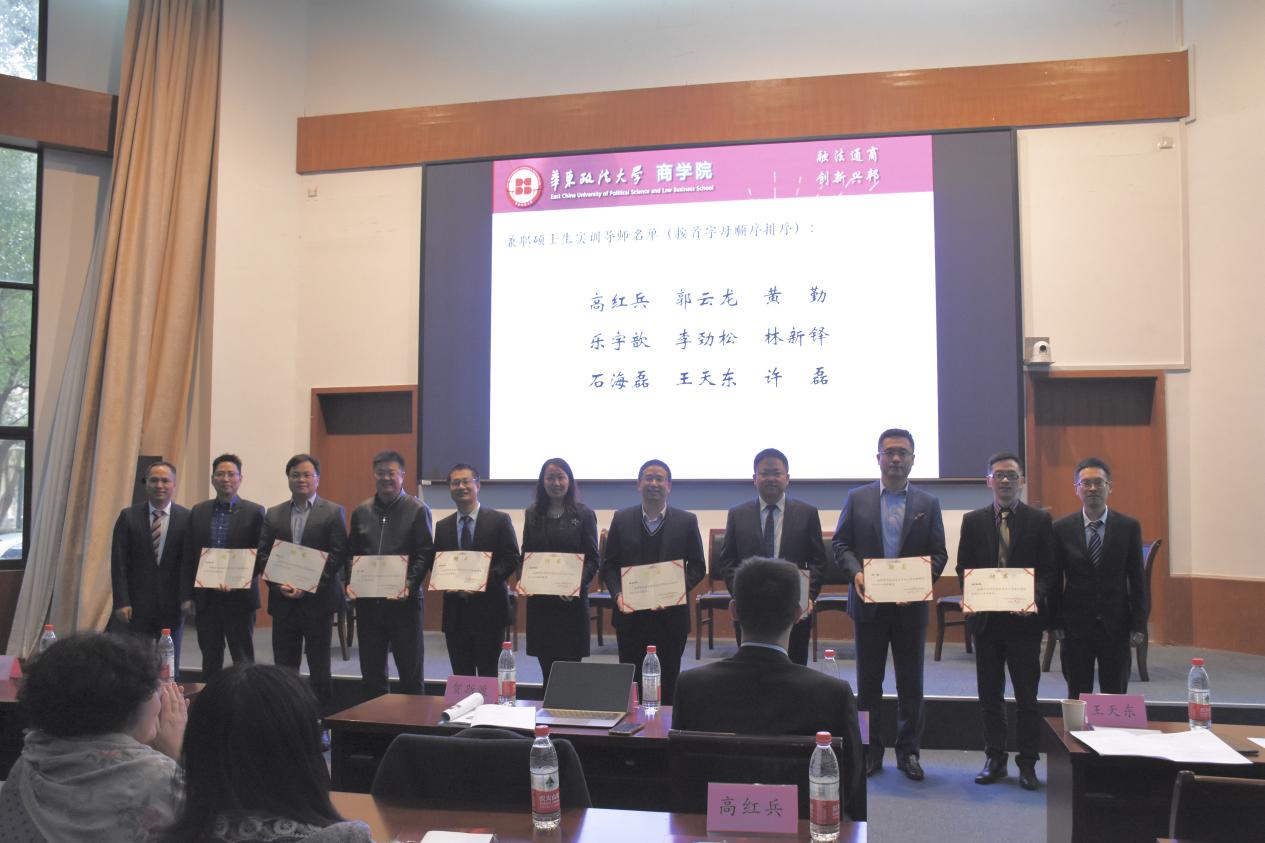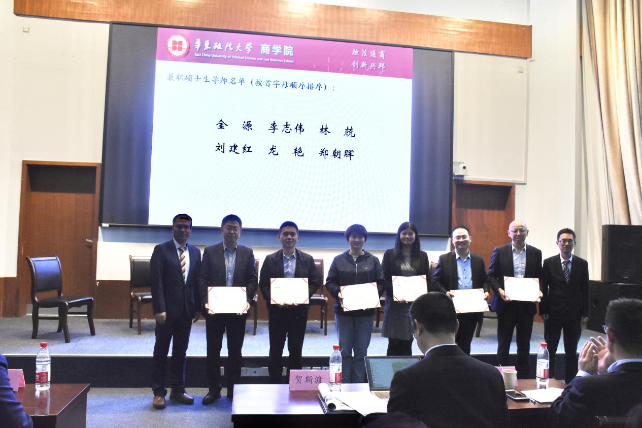 虞潇浩和院长高汉共同为新增的六位兼职硕士生导师和九位兼职硕士生实训导师颁发聘书。