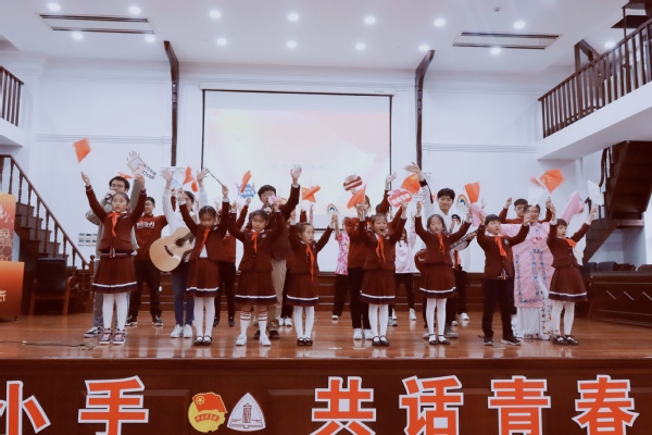 现场,大、中、小学学生代表互赠礼物、表达心意,并共同演绎了原创诗歌朗诵《我们的青春力量》和快闪《我和我的祖国》。
