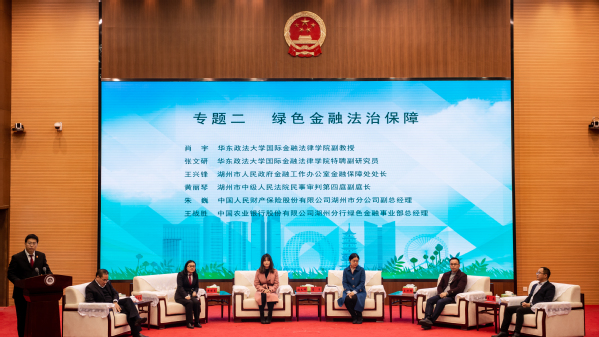 签约仪式后,郑彧、丁勇、肖宇、张文研参与“绿色金融法治保障与风险治理”实务论坛,围绕绿色金融风险治理及绿色金融法治保障两方面,从绿色金融债券的法律问题、公司的社会责任、绿色金融法治环境及美国“绿色金融”的规制路径等方面阐述了自己的观点,与来自湖州市金融监管部门及金融企业的实务人士进行了激烈思想碰撞。