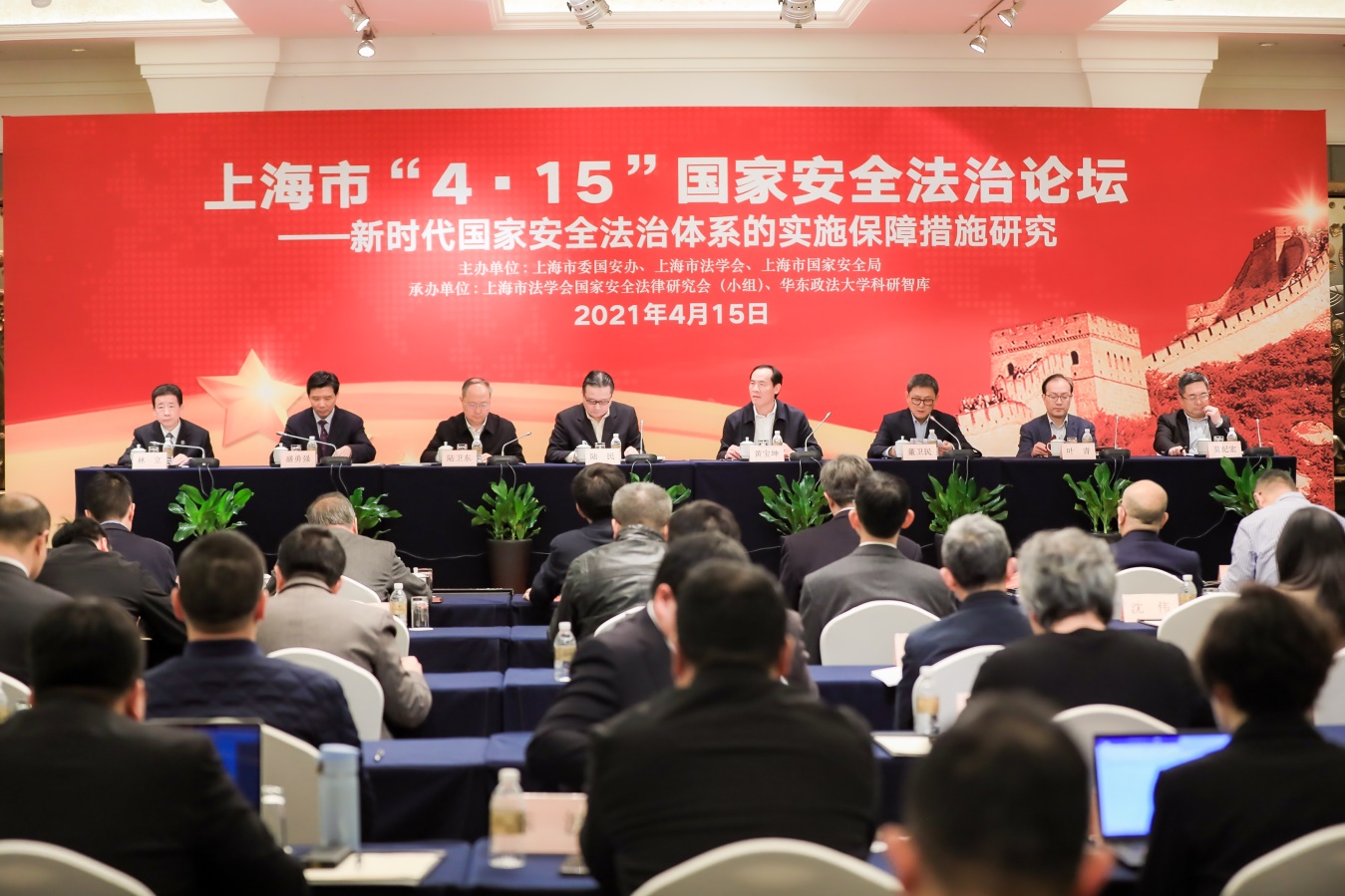 为全面贯彻落实总体国家安全观,深入推进新时代国家安全法治体系的实施保障,在第六个全民国家安全教育日,由上海市委政法委、市法学会、市国家安全局共同举办,上海市法学会国家安全法律研究会(小组)和我校科研智库联合承办的上海市“4·15”国家安全法治论坛在沪举办。