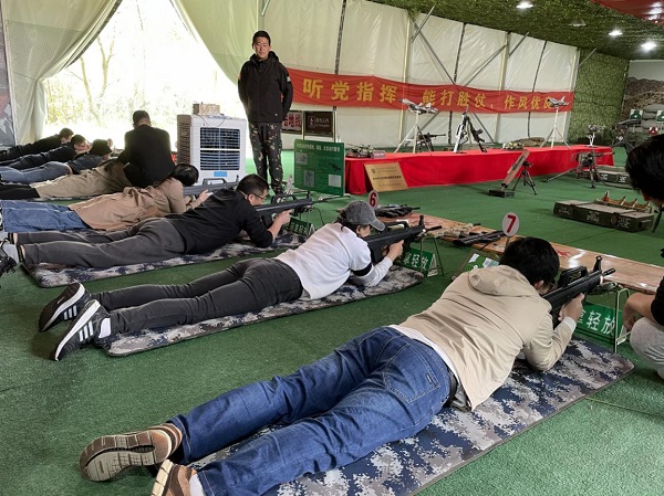 在沙家浜国防教育基地,教师们换上了新四军的军装,扛起了步枪,在营地指战员的指导下开展打靶射击训练。