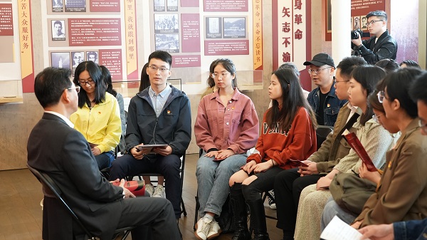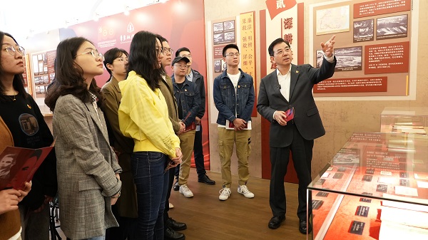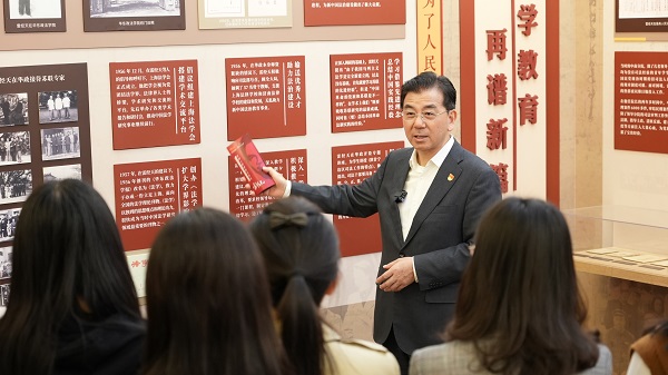 4月26日上午,校党委书记郭为禄在长宁校区格致楼“党和人民的忠实儿女——雷经天”专题展现场,为学生党员、发展对象和入党积极分子上了一堂生动的主题党课。