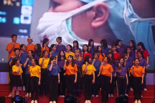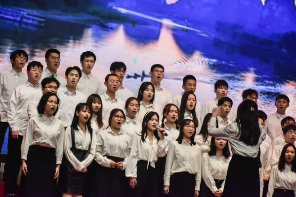 主题歌会主要采用合唱形式,节目主题鲜明,作品内容丰富,参与团队以昂扬向上的态度唱响红色经典,用歌声抒发对党和祖国的真挚热爱和祝福。歌会在管弦乐团演奏的《英雄赞歌》和《我爱你中国》中徐徐拉开帷幕。商学院《明天会更好》、外语学院《啊朋友再见》节奏明快、铿锵有力,以恢弘气势展现新时代青年的昂扬斗志;律师学院《灯火里的中国》、国际金融法律学院《奉献》清丽柔缓、温润悠扬,以饱满情感述说了华政学子的坚定信仰;传播学院《我们都是追梦人》、经济法学院《红旗飘飘》曲调灵动、活力四射,以高昂热情表达年轻一代的卓越追求。最后,歌会在各学院代表带来的《星辰大海》一曲中画下圆满的句号,它以悠扬的歌声告诉青年学子:以梦为马,不负韶华,我们的征途是星辰大海。整场歌会,气势如虹,掌声雷动,舞台上的同学们或激昂或深情,观众席上的同学们也被这动人的旋律所感染,或热烈鼓掌,或放声合唱。