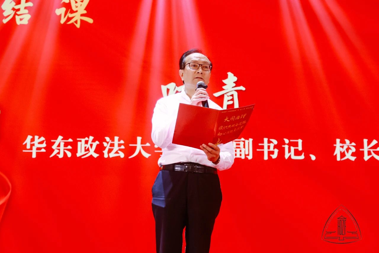 在结课环节,校党委副书记、校长叶青强调,这是一个需要理论而且一定能够产生理论的时代,这是一个需要思想而且一定能够产生思想的时代。我们不能辜负了这个时代。华政师生要充分认识到社会主义制度的优越性,听党话,跟党走,积极拥抱新时代、奋进新时代,以政治自觉和制度自信立足自身志业,为坚持和完善中国特色社会主义制度,推进国家治理体系和治理能力现代化作出应有贡献。