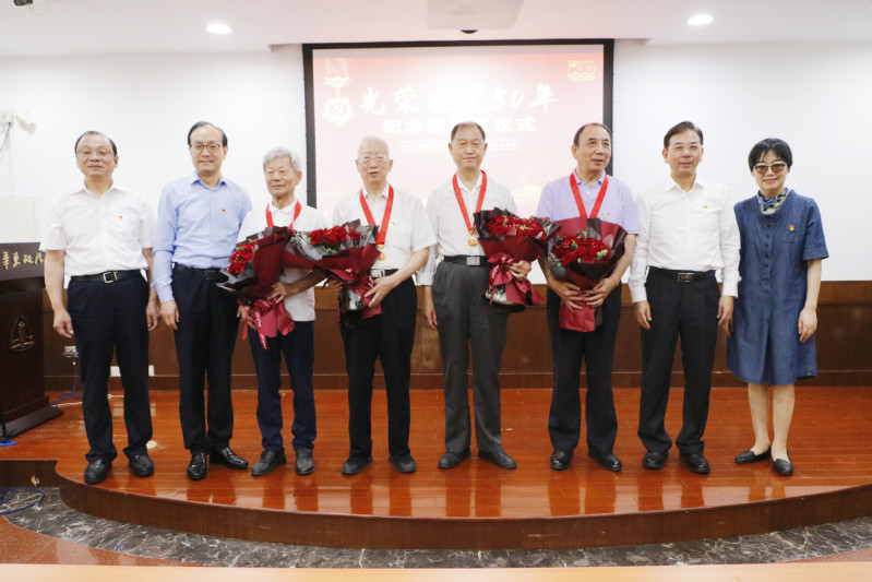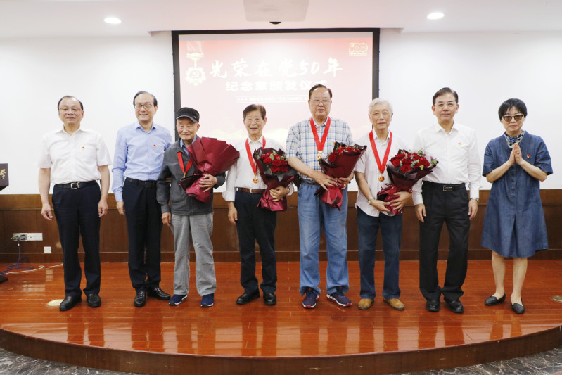 为庆祝中国共产党成立100周年,讴歌中华民族实现伟大复兴的百年征程,致敬兢兢业业为党工作、踏踏实实为人民服务的老党员,6月24日上午,赓续红色基因,传承百年薪火——“光荣在党50年”纪念章颁发仪式在长宁校区举行。校党委书记郭为禄,校党委副书记、纪委书记应培礼,校党委副书记唐波,相关部门负责人,获“光荣在党50年”纪念章离退休党员代表,教职工党员代表和新发展学生党员代表出席仪式。仪式由校党委副书记、校长叶青主持。