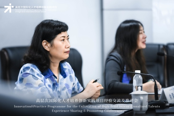 专家指导环节,我校国际交流处处长伍巧芳教授、外语学院院长余素青教授与项目专家东南大学前副校长浦跃朴教授、南开大学前副校长关乃佳教授、中科浩博国际教育创始人兼CEO孙中雯就本校高层次国际化人才培养中存在的问题和困难进行交流。