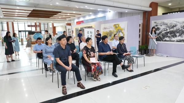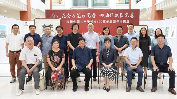 在中国共产党建党百年之际,我校迈向“十四五”新征程之时,9月13日上午,“庆祝中国共产党成立100周年庞荣年书画展”在松江校区明珠楼二楼大厅开幕。校党委副书记唐波、河北美术学院终身教授庞荣年、河北美术学院客座教授张岚、河北会堂书画院副院长李蕴谦,我校科学研究院教授丁建顺、文伯书院艺术教育中心教师陶大珉、王玺等出席。党校办、党委宣传部、科研处、图书馆、政治学与公共管理学院、科学研究院等院部相关教师及书画爱好者参加开幕式。开幕式由党委宣传部部长虞潇浩主持。