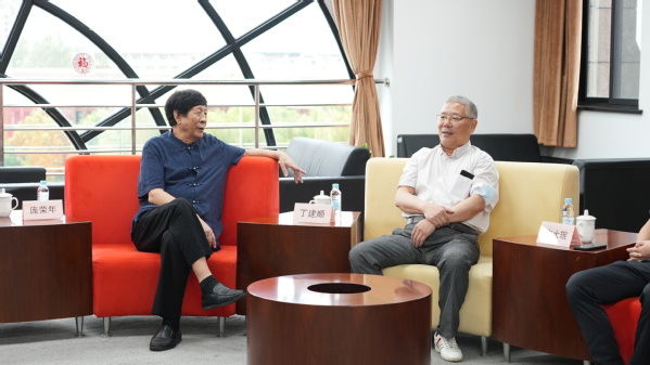 与会嘉宾跟随庞荣年参观画展后移步“教工书屋”,出席由科研处副处长陆宇峰主持的“庞荣年书画艺术分享会”。庞荣年畅谈在党的领导下从事书画艺术七十年的人生历程,特别讲述了改革开放给自己带来的艺术新生命,深情回顾了陶一清先生等老一辈书画家的谆谆教诲,以大量生动鲜活的例子,深入浅出地阐释了取与舍、做人与作画、生活真实与艺术真实、思想解放与艺术进步之间的关系。张岚、李蕴谦分别发言,进一步介绍了庞荣年书画的思想境界和艺术风格,及其高调做事、低调做人、追求艺术永无止境的高尚人格。中国作家协会会员、书法家、收藏家、我校科学研究院教授丁建顺,中国书法家协会会员、兰亭奖得主、我校文伯书院教师王玺,上海大学美术学院油画系博士、我校文伯书院教师陶大珉对庞荣年的书画艺术给予高度评价,认为庞老作画胸有成竹、笔法娴熟、用色大胆、善于表情达意,其作品富有时代性和趣味性,将传统性、现代感和生命力融为一体,其山水画更是堪称“在前辈艺术家的崇山峻岭中突出重围”,自成大家风格。党校办、党委宣传部、图书馆、科学研究院的部分教师也发表了观展感言,分享会在轻松坦诚的愉快氛围中结束。