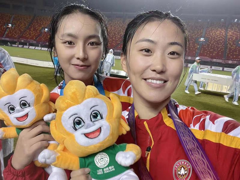 9月25日晚,在陕西西安进行的第十四届全国运动会女子足球成年组项目决赛中,奥运联合队(奥运会运动员组成的运动队)以1:0比分战胜上海队收获冠军,上海队获得亚军。代表两队比赛的队员当中有6名队员是我校学子,分别为缪斯雯、闫锦锦、金菁、吴冰霞、杨家琳、杨文琦同学,均为我校单招免试录取的2020级健将运动员,现就读于经济法学院。