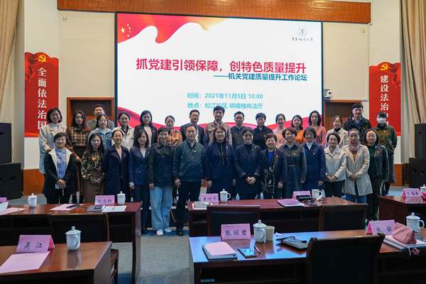 为进一步提高学校机关党建工作水平,搭建机关各党支部交流学习和展示的平台,鼓励机关党务干部人员在党建工作中积极思考、不断探索,提升机关党建工作质量。11月5日,以“抓党建引领保障,创特色质量提升”为主题的机关党建质量提升工作论坛在松江校区尚法厅举办。校党委副书记唐波,机关党委委员、机关党支部书记、副书记及委员共五十多人参加论坛。论坛由机关党委副书记栾绍兴主持。