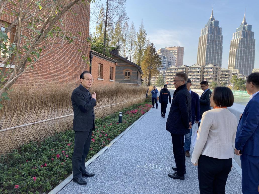 仪式环节结束后,叶青陪同与会嘉宾参观苏州河步道华政段,并作细致讲解。
