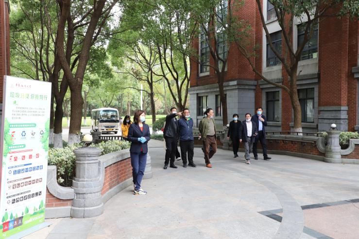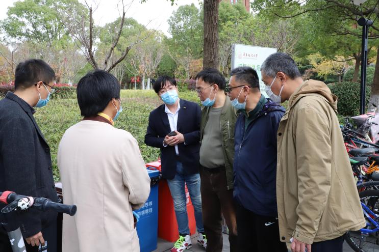 11月16日,上海市绿化和市容管理局联合检查组来我校松江校区开展校园生活垃圾分类工作检查。副校长周立志,后勤管理处、学生处等部门负责人陪同检查。