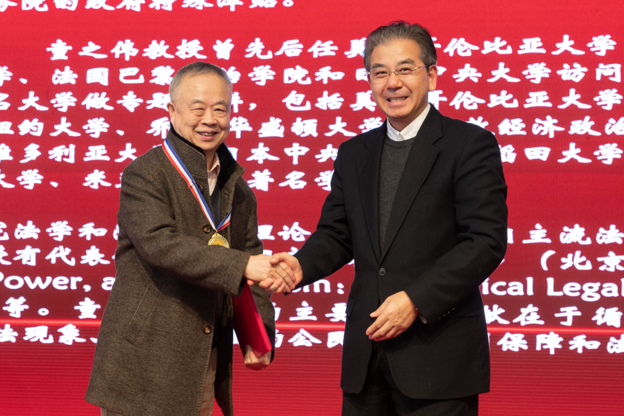 荣休教师代表陈和华、童之伟和王晓红回顾了在华政教书育人的经历,感谢学校的培育、支持和帮助,表示希望继续为学校贡献力量。