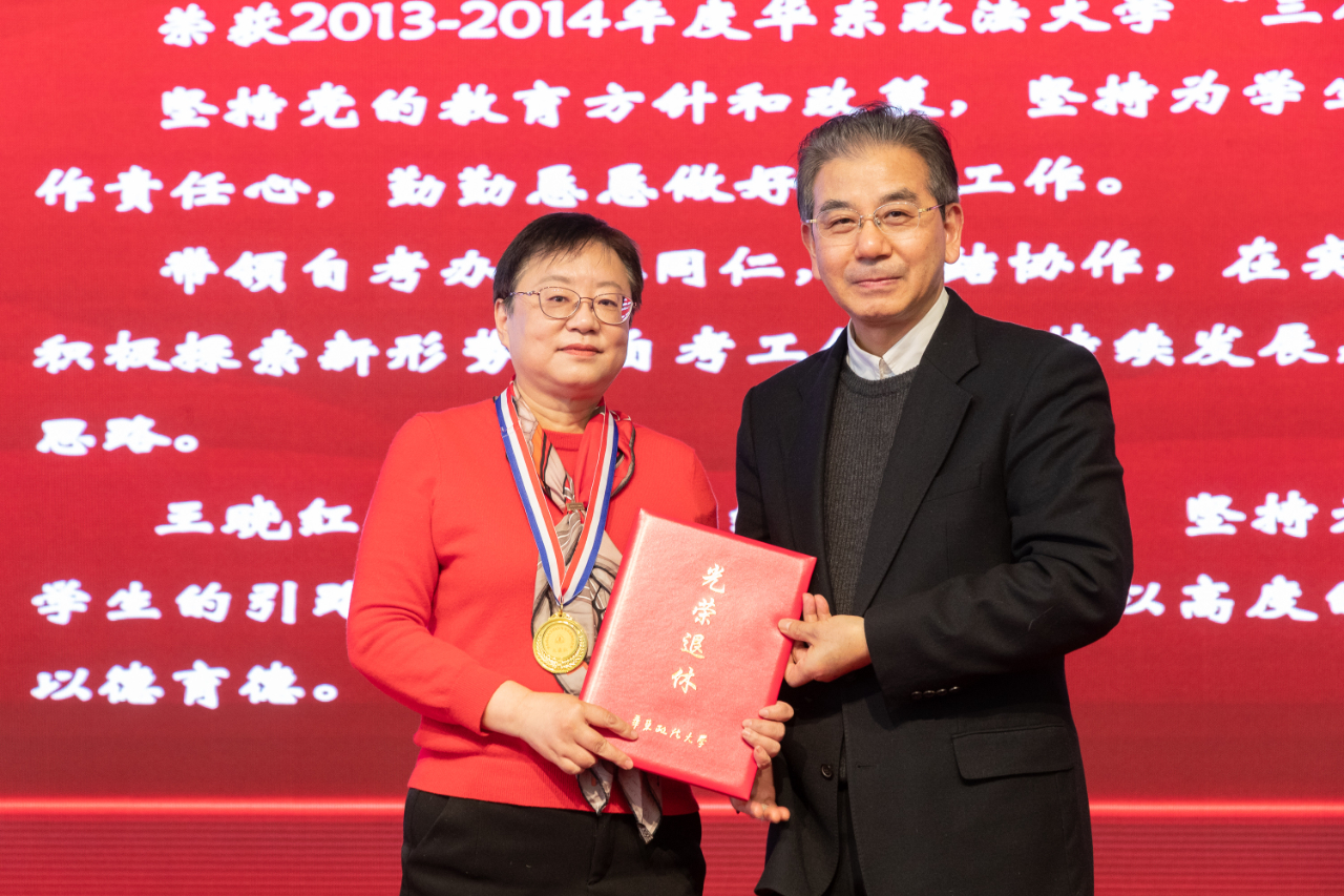 校党委书记郭为禄表示很高兴再次见证了新老两代华政人的师德接力传递。向为学校作出贡献即将荣休的各位老师表示崇高敬意,对新入职的同事表示热烈欢迎。