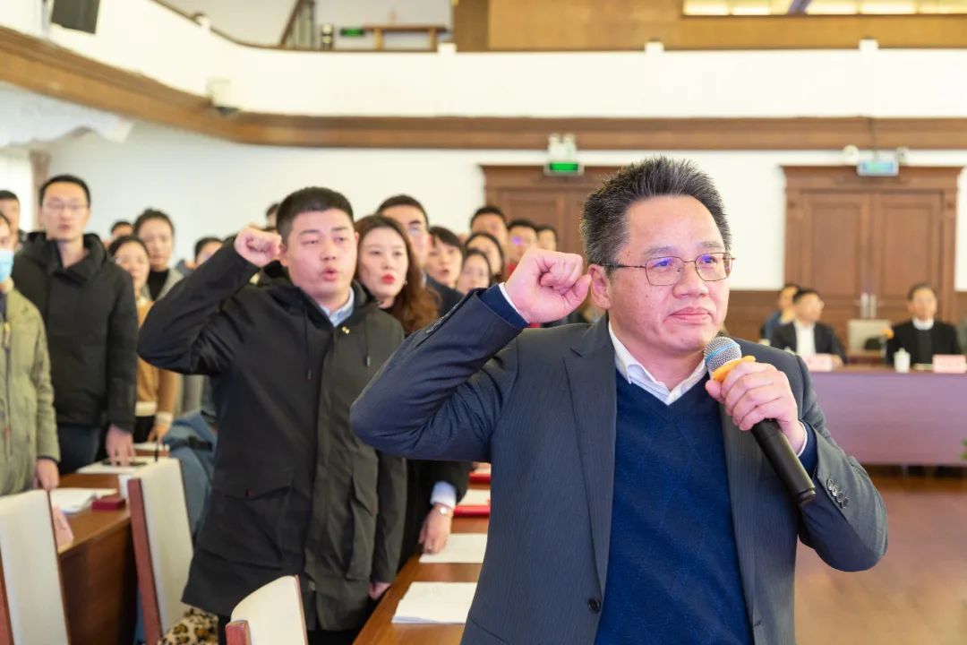 杨忠孝带领新进教师宣誓,全体新进教师起立,庄严宣誓。