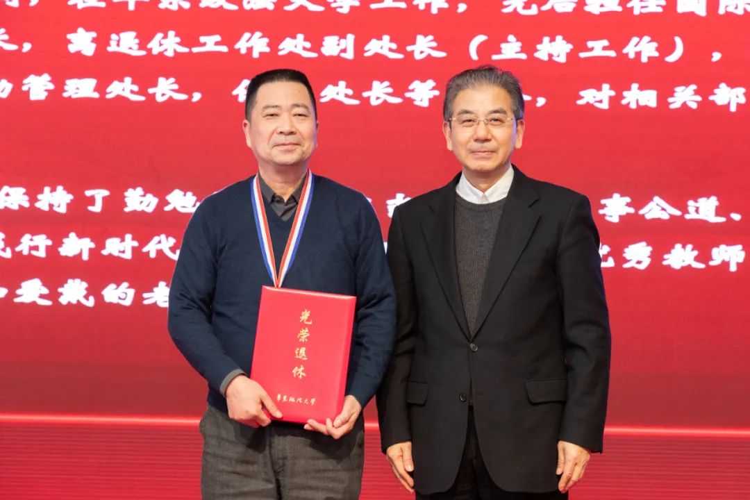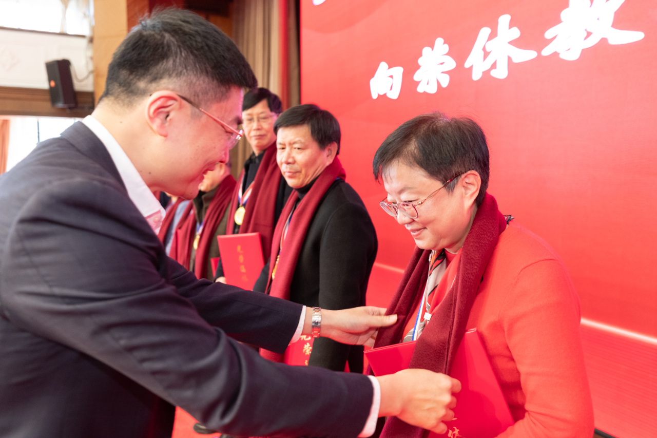 荣休教师是学校发展的建设者、见证者,退休后仍是学校的宝贵财富。他希望,面对新的退休生活,荣休教职工要保持“乐观心”“事业心”;各单位要保持“感恩心”“同理心”,要主动关心关怀荣休教职工;对青年教职工来说要担起责任,保持“进取心”“谦卑心”,多向荣休教职工学习。