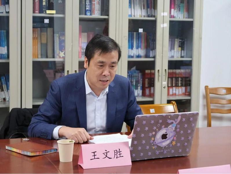 王文胜代表外语学院汇报学院学生工作情况。他表示,外语学院学生工作的总格局可以用三个数字来形容,即“一”个目标、“三”大工程、“五”大建设。“一”个目标,是指培养新时代的复合型人才。外语学院以培养“法商融通”的复合型外语人才为立德树人的总目标。